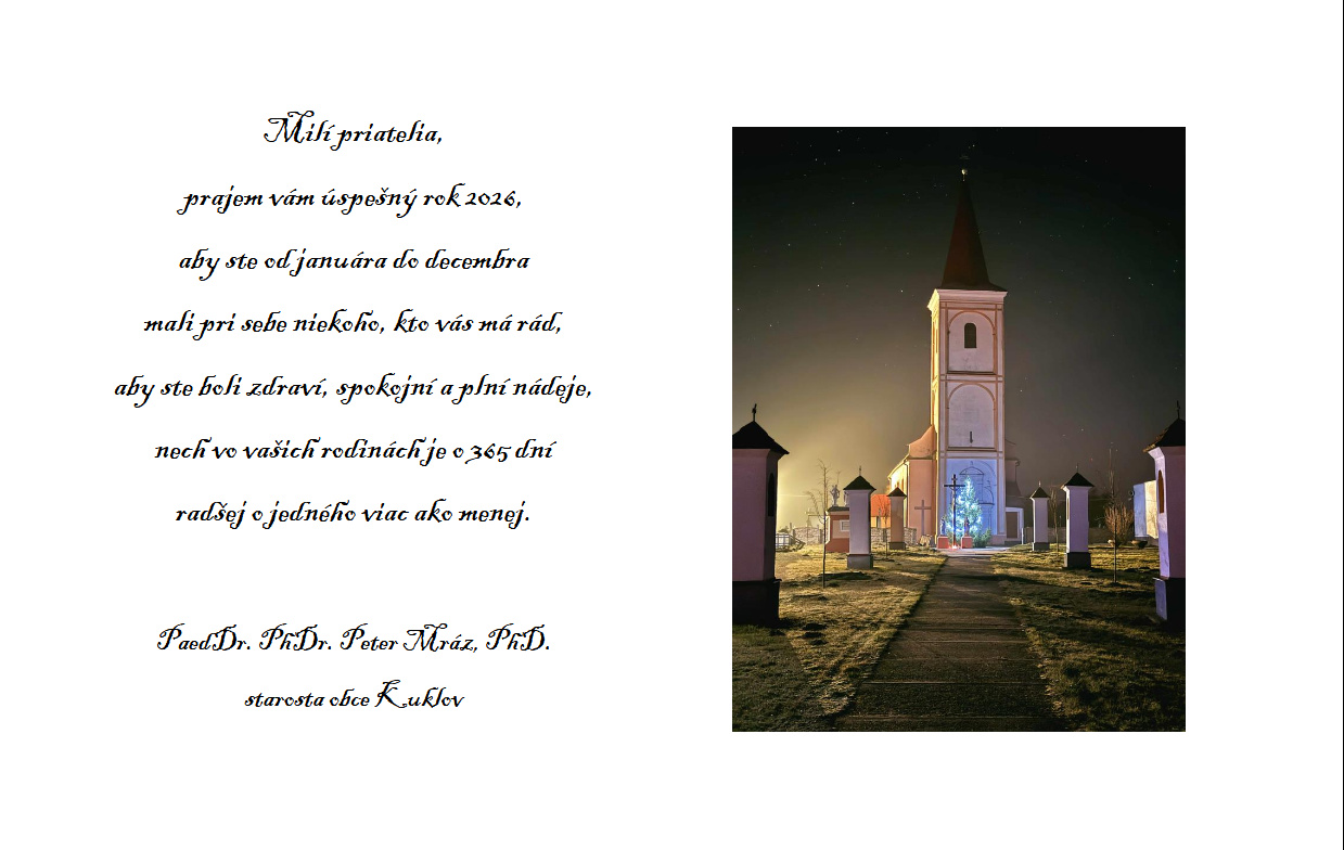 Oznam o zatvorení Obecného úradu Kuklov v dňoch 23. 12. 2025 - 6. 1. 2026
